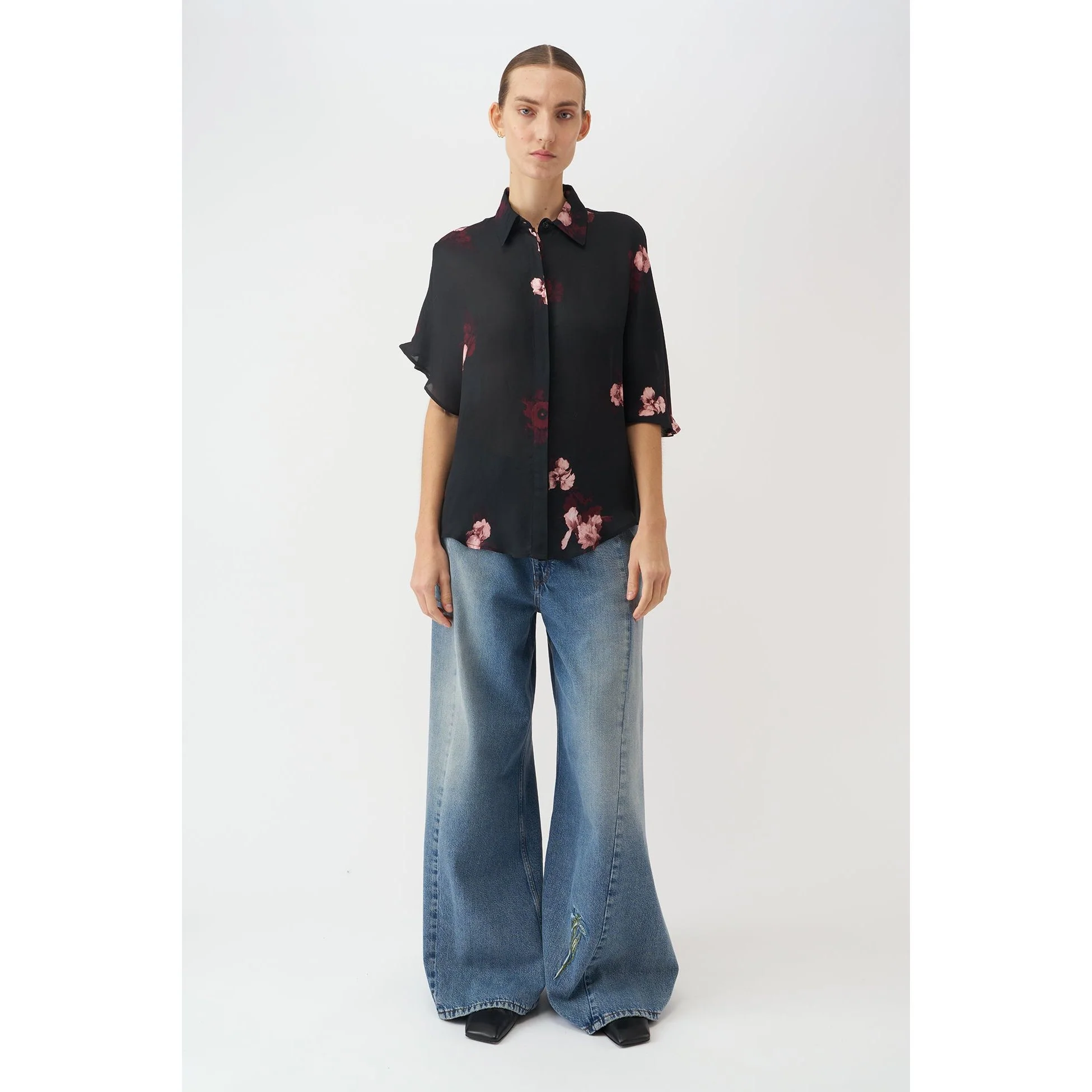 Cecilie long blurry flower blouse